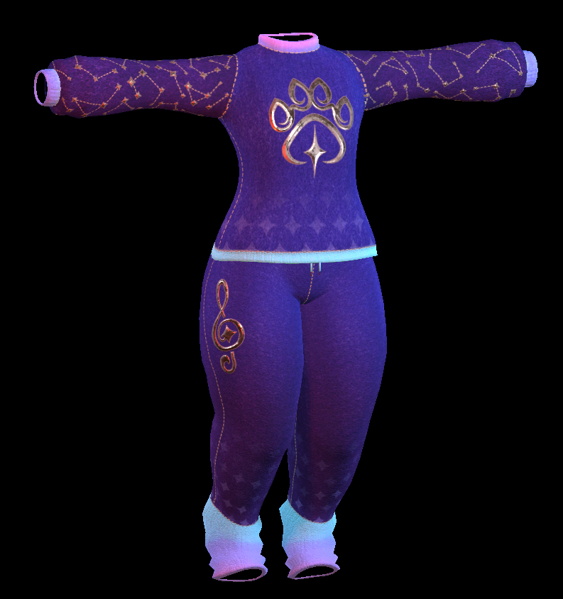 (for both the PJ shirt and pants) base textures, normals, maskmap (metallic, smoothness), rgb and alpha emission maps